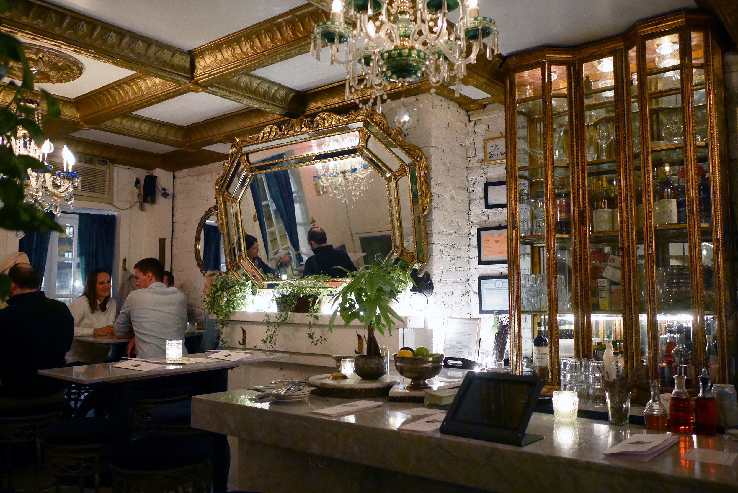 Stepping into the restaurant makes me feel anachronistically transported back in time. Everything screams of posh, old-money decor that harken the heyday of post Industrial Revolution French bourgeois. White marble counter tops. Golden gilded beams replete with detailed engravings. Large panel mirrors. Emerald curtains that coincide with the green velvet on the stools. There even are low-hanging chandeliers to complete the look. Needless to say, the interior decoration is superb.