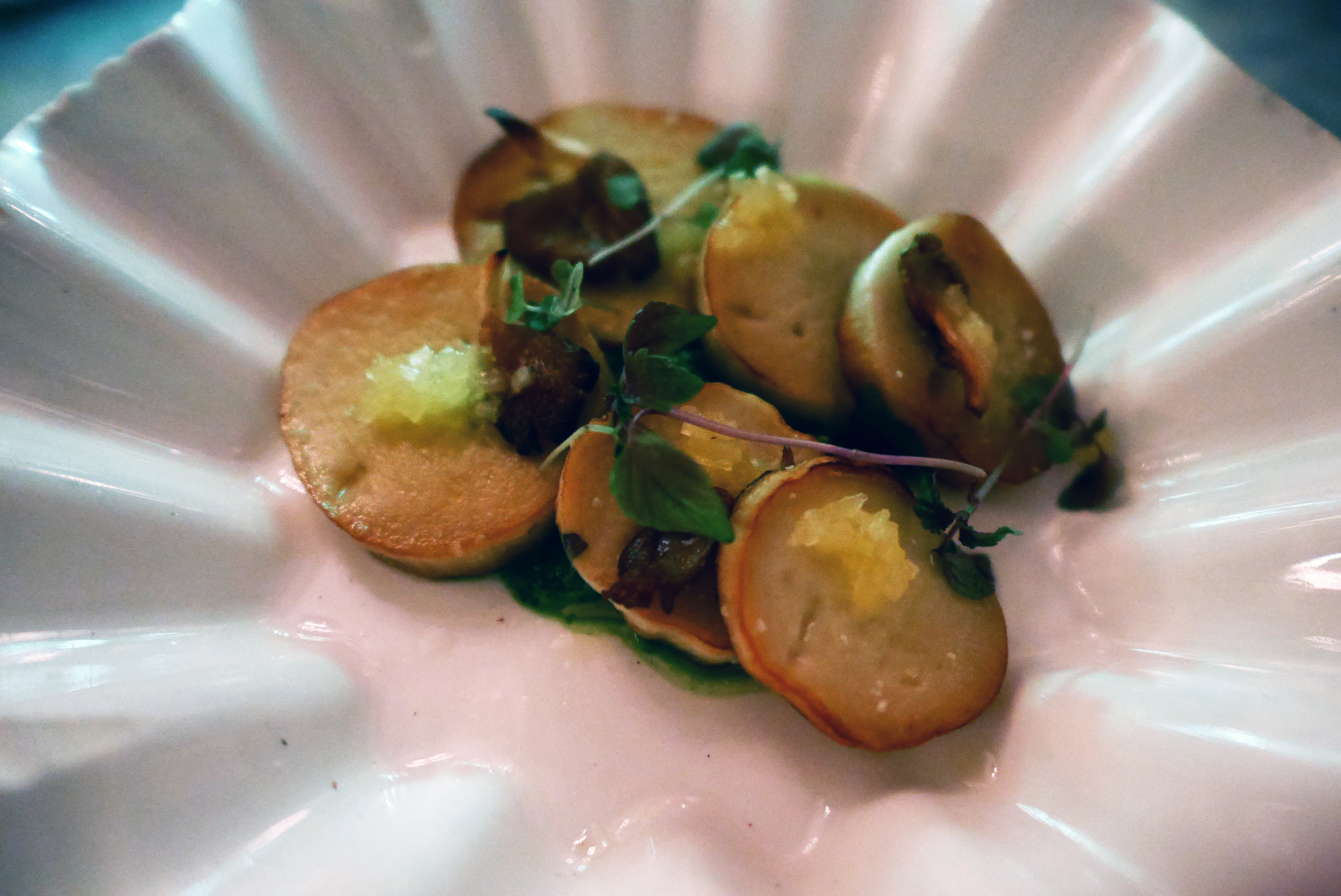Ah, the art of simplicity. The fungi, sliced into scallop-like rings, are beautifully seared with rings of brown, crusty char. As expected, the umami within, which is followed by smokiness, hits unabashedly. The acidity from the mignonette and oyster leaf does balance the earthy flavors. That said, I am not sure I can see the saffron as the mignonette is not bright yellow. On a whole, this dish is decent, minus the arugula pesto. There is no fucking way I am eating that wretchedly bitter mulch again.