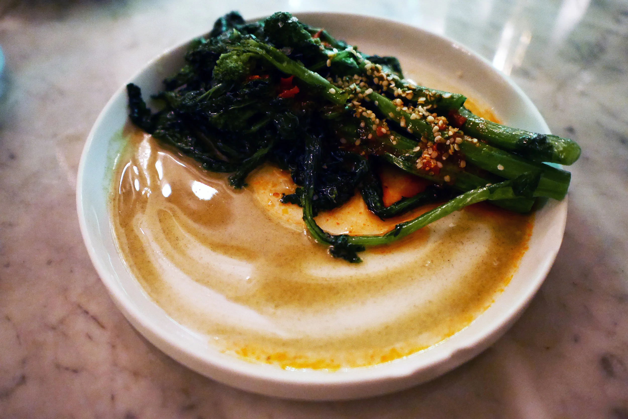 Balance! Where art thou? While the vegetables are delicately tender and I appreciate the astringency of the rapini, the bitterness of the vegetable and the spiciness of the chili oil mask the other flavors. The hemp seed butter, along with the lemon verbena, are just not assertive enough to shine through the bolder, if not more abrasive, flavors. What boggles me more is the price of the dish. These are just vegetables after all, cooked as such and presented as such, with a few underwhelming accompaniments. They have not undergone any mind-blowing transfiguration to create eye-opening flavor combinations. How then, is this worth 12 USD for a few stalks of broccoli rabe?